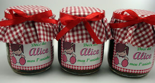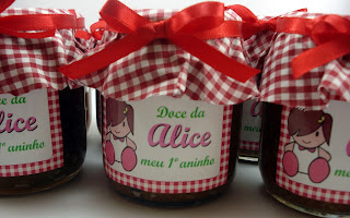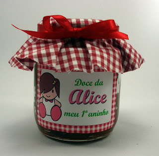 E a lembrancinha que personalizei, foi uma deliciosa compota de doce de abóbora com coco preparado carinhosamente pela vovó!!! Hummmm, é de dar água na boca, né?!?!?